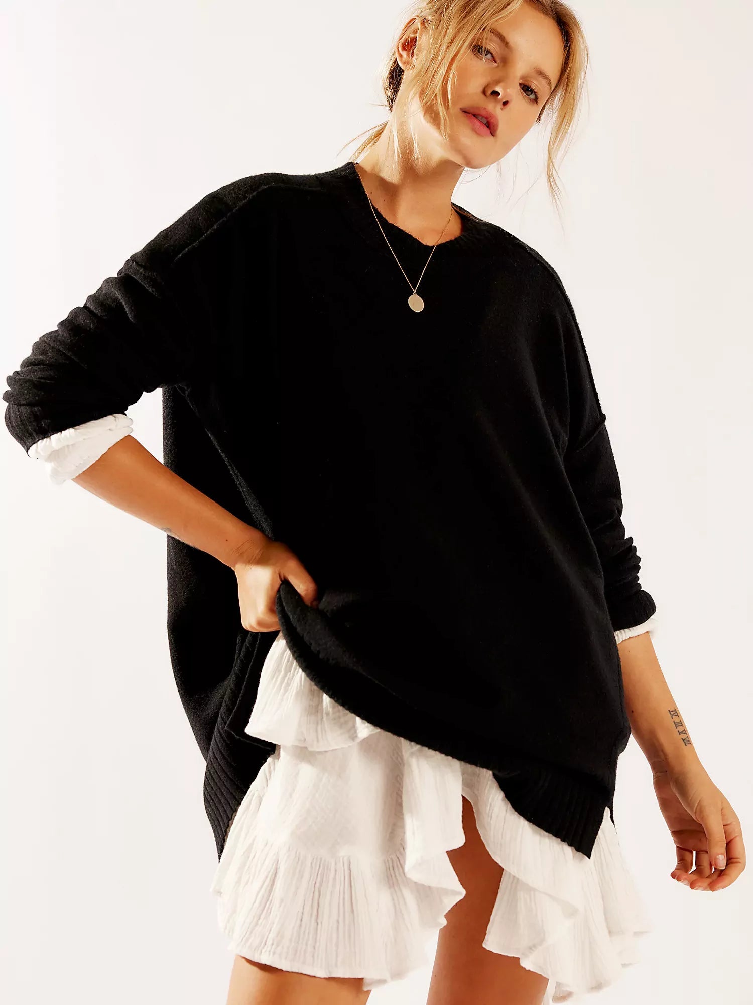 · Sweater: A must-have from our knitwear collection, this pullover sweater is crafted from the softest knit fabric, offering a simple yet stylish design. The relaxed fit is complemented by contrasting ribbed panels and side slits, making it a versatile piece that pairs effortlessly with various looks.